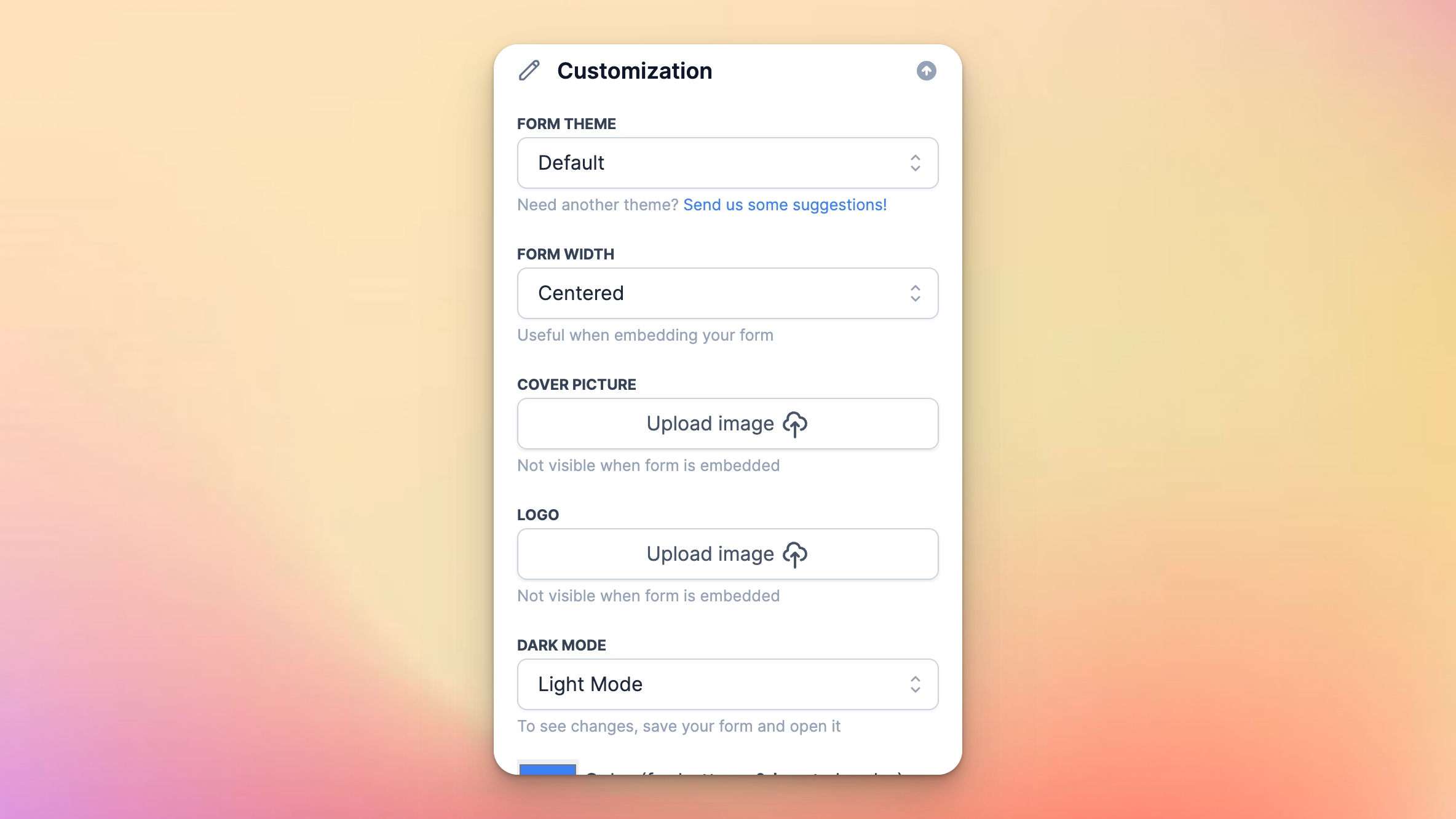 With the text and image blocks, users can add descriptive titles, labels, and captions to their form fields, making it easier for respondents to understand the information they are being asked for. Additionally, users can add images to their forms to provide visual information or to make their forms more visually appealing.